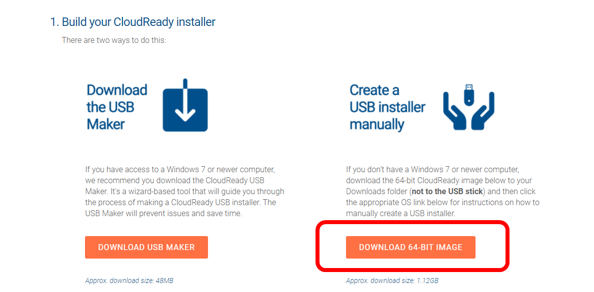 また、Windows PCの場合「CloudReady USB Maker(Windows用ソフトウェア)」という