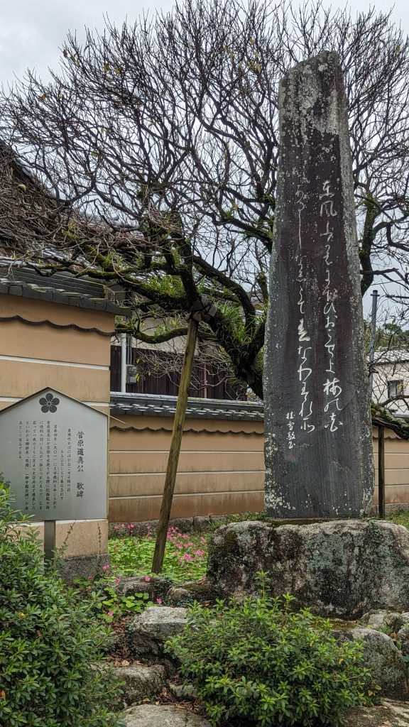 百人一首で有名な「東風吹かば にほひをこせよ 梅の花」(菅原道真)の石碑があります。
